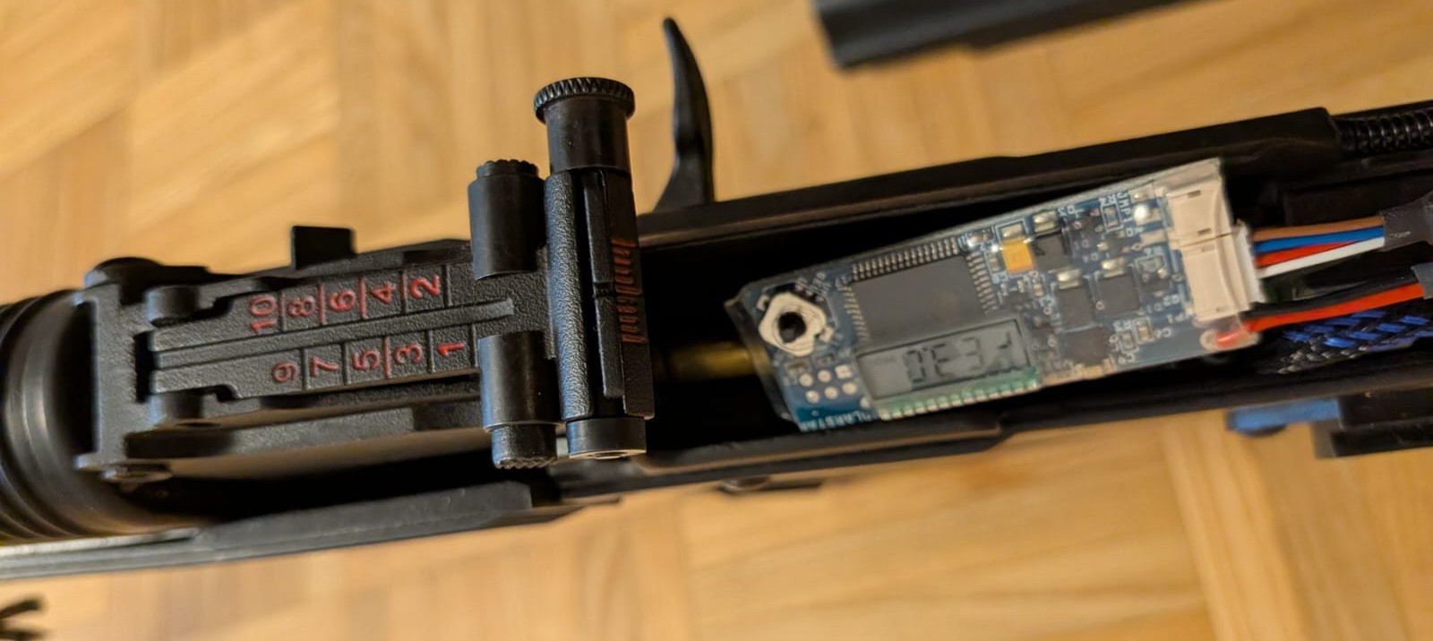 Bespielt wurde das Gerät eine Saison. Funktioniert einwandfrei, eingestellt über imbus bei Full Auto auf 1.4 Joule. Durch den 550mm langen Lauf sind präzise Distanztreffer kein Problem.